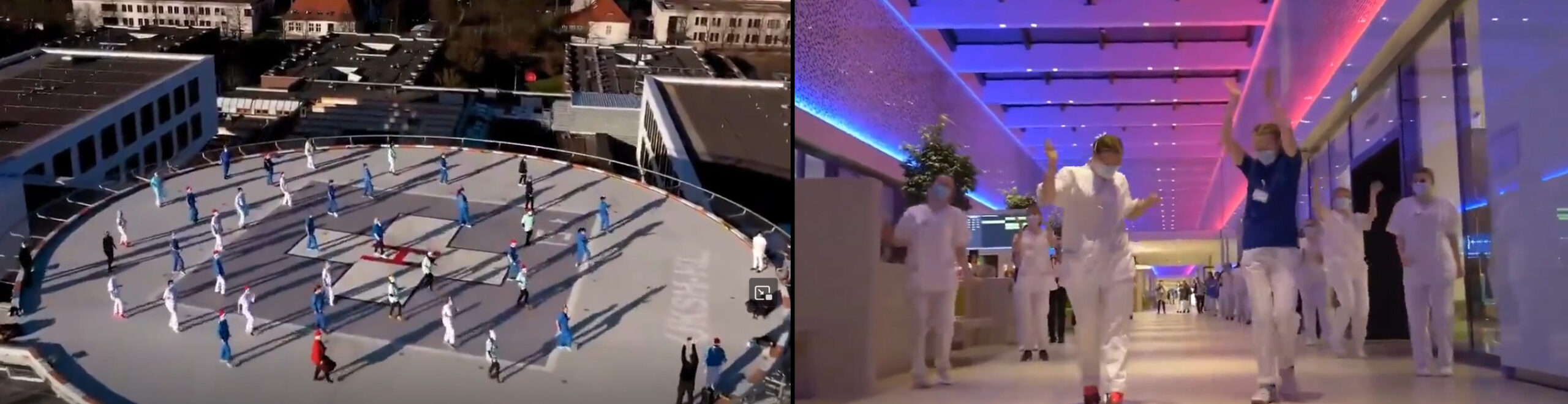 Eines der verbreitetesten, aber auch rätselhaftesten Phänomene in der Frühzeit der Pandemie waren die plötzlich gehäuft auftretenden Videos von tanzendem Klinikpersonal selbst. Teilweise mit verblüffendem Aufwand (bis hin zum Einsatz von Drohnen für Panorama-Luftaufnahmen) geprobt, inszeniert und produziert, häuften sich diese Filme binnen kurzer Zeit im Internet und sorgten für unterschiedliche Reaktionen, die von spontaner Freude bis hin zu der ungläubigen Frage reichten, wie denn so etwas möglich sei, wenn doch gleichzeitig angeblich die Gesundheitssysteme der gesamten westlichen Welt kollabierten. Mit der Antwort auf diese Frage beschäftigte sich ein griechischer Autor mit dem Pseudonym „0minus Prime“ auf dem Substack „Critical Thinking“. Er stellte die verblüffende These auf, dass die Tanz-Videos keine kuriose Begleiterscheinung, sondern ein wichtiger Teil der Kampagne(n) waren.