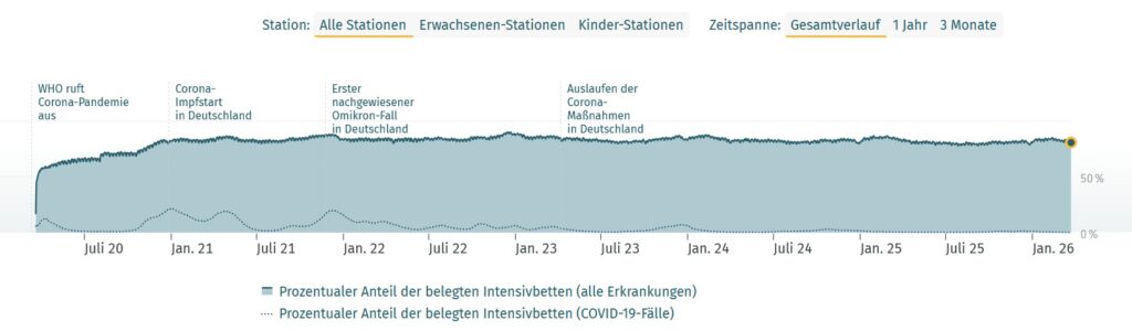 „So verdeutlichen die aktuellen Daten des RKI zu Omikron (Wochenbericht vom 30.12.2021) [3], dass die Ungeimpften sogar einen geringeren Anteil an Infizierten aufweisen als ihrem Bevölkerungsanteil entsprechen würde: von den 5117 Omikron-Fällen mit bekanntem Impfstatus waren nur 1097 (21,4%) ungeimpft, obwohl im betreffenden Zeitraum (21.11-27.12.) im Mittel noch immer 27,8% der deutschen Bevölkerung ungeimpft waren. 2883 Omikron-Infizierte hatten eine vollständige Erst- bzw. Doppelimpfung, aber noch keinen Booster erhalten (56,3%, Bevölkerungsanteil nur 50,1%) und 1137 Personen waren bereits mit einer Booster-Impfung versorgt worden (22,2%, Bevölkerungsanteil 22,1%)“